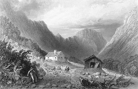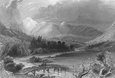 “Last night we had a thunder shower, with sharp lightning. The thunder sounds heavy, and rumbles or echoes among the mountains with a very impressive effect. Just at evening we visited a beautiful cataract called the Flume, about half a mile from the house, and took the finest shower-bath I ever enjoyed. To-day the weather is doubtful, and we shall not attempt the ascent till to-morrow. There is enough in this immediate neighbourhood to occupy a week. The variety and magnificence of the scenery in every direction would satisfy the most ardent lover of the picturesque. Crawford is a fine fellow: his house is excellent, his trout delicious, and his neighbours perfectly quiet! The album kept here is an amusing omniana of nonsense and astonishment, sentiment and piety.