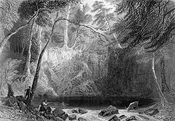 From dark river, rock, and fall,
