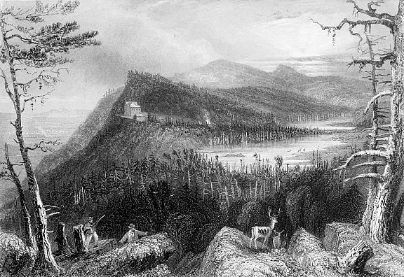 “Here he remained, by reason of adverse winds, four days. On the day of his arrival ‘they went on land and gathered good store of chestnuts,’ but whether on the east or west side of the river is not mentioned. But the day following they went on land ‘to walk on the west side of the river, and found good ground for corn and other garden herbs, with good store of goodly oaks and walnut-trees, and chestnut-trees, yew-trees, and trees of sweet wood in great abundance, and great store of slate for houses and other good stones.’ Nothing is said of any inhabitants while they were thus visiting the site, which is now that of the village of Athens, opposite Hudson. But next morning (26th), after the carpenter, mate, and four of the company had gone on shore to cut wood, while the vessel lay at anchor, two canoes came up the river from the place where they first found ‘loving people’ (Catskill landing); and in one of them was the old chief whom Hudson had caused to be made intoxicated at Albany. He had followed our strange visitors thirty miles, to the base of the Catskill Mountains, with the double view of again testifying to Hudson the sincerity of his friendship, and of gratifying the love of the marvellous, by relating his own adventures to the mountaineers, and drawing them from their retreat to witness the floating phenomenon. The old chief now introduced with him ‘an old man, who brought more stropes of beads and gave them to our master, and showed him all the country thereabout, as though it were at his command!’ They tarried, greatly pleased with the unaccountable curiosities they discovered on board. Hudson ‘made the two old men dine with him, and the old man’s wife; for they brought two old women and two young maidens of the age of sixteen or seventeen years with them, who behaved themselves very modestly.’