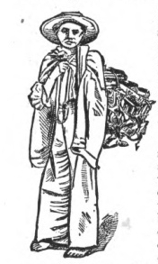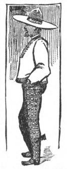 At larger towns a change for the better was noticeable in the clothing of the people. The most fashionable dress for the Mexican Indian was white muslin panteloons, twice as wide as those worn by the dudes last summer; a serape, as often cotton as wool, wrapped around the shoulders; a straw sombrero, and sometimes leather sandals bound to the feet with leather cords.