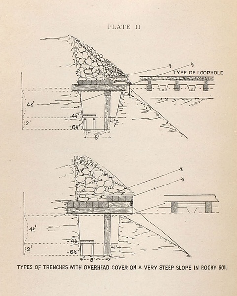 [65] A blindage is a covered trench with a roofing at least sufficiently strong to afford protection against rifle and shrapnel bullets.