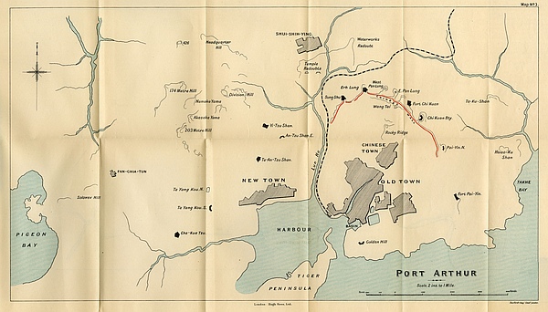[74] This refers to the north-eastern section of the defence. The Japanese captured the East and West Pan-lung Redoubts, but obtained no other advantage for a total loss of 15,000 men. Hence the “successfully defended.” (See Map III.)