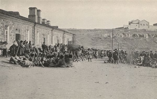 [70] The average Russian soldier of the infantry of the line, with his loose jacket, loose breeches, battered peaked cap, and invariable slouch, does not look what we call smart, and this is what General Tretyakov is probably referring to.