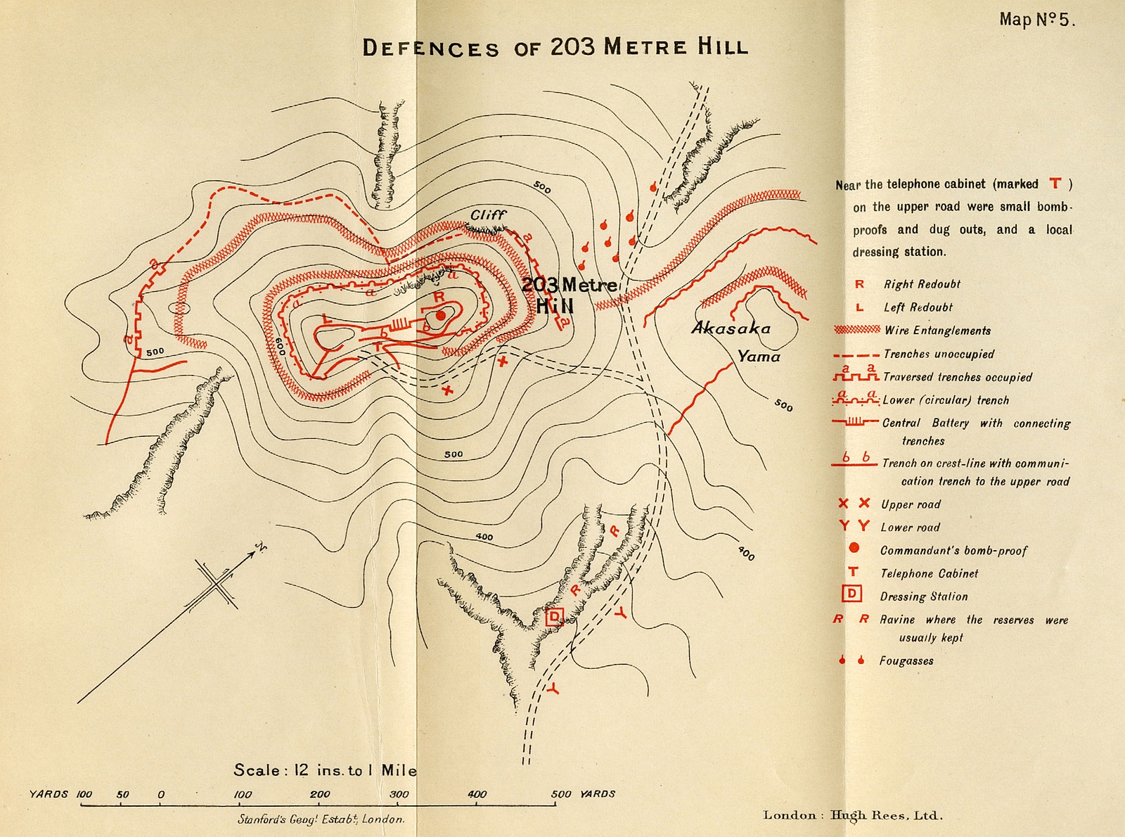 [114] The Japanese eventually had six batteries firing from the neighbourhood of this village at the rear slopes of 203 Metre Hill and Akasaka Yama. (See Map III.)