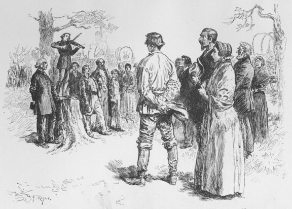 Mrs. Bryant, Oscar’s mother, said: “Dear me, I am tired and sick of hearing about ‘bleeding Kansas.’ I do wish, husband, you would find something else to talk about before Oscar. You have got him so worked up that I shouldn’t be the least bit surprised if he were to start off with some of those tired-looking immigrants that go traipsing through the town day by day.” Mrs. Bryant was growing anxious, now that her husband was so much excited about the Kansas-Nebraska struggle, as it was called, he could think of nothing else.