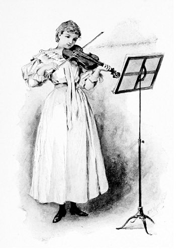 "She stood there an image of grace, her chin bent lovingly down to her violin"