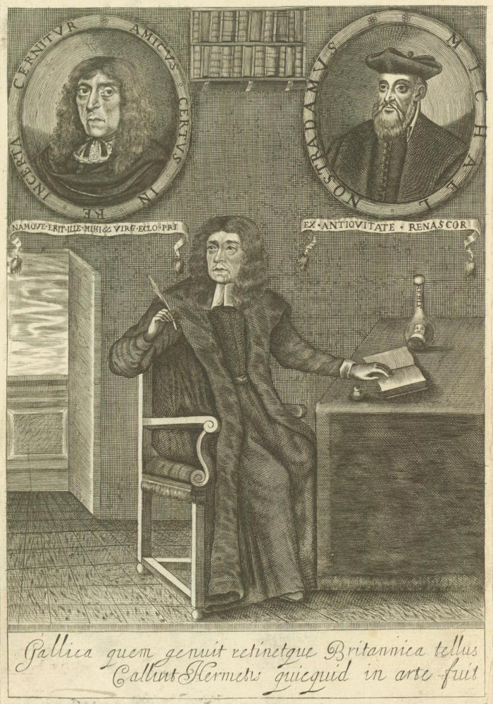 Perenni Famæ Doctissimi Viri Theophili de Garencieres Doctoris Medici Colleg. Lond. de Interpretatione NOSTRADAMI Fatidici Tetrastichon hoc dicavit.