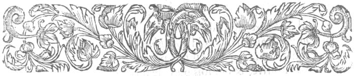 The Dolphin and his Sisters were in their Chambers upon Beds of State, with their Robes lined with Hermines, and were brought to the quadrangle, the waiting Gentlemen going before with Torches in their hands, with the Bed Chamber men, and Gentlemen of the Chamber, five Drums, Waits, and Trumpeters, Heralds, and the Knights of the Holy Ghost, with the three Honours; in the first, for the youngest Daughter, the Ewer, the Bason, the Pillow, the Wax Taper, the Chrisme, the Saltseller, were carryed by the Baron, Son to Marshal de la Chastre, by the Lords Montigny, la Rochepot, Chemerand, Liencourt, Fervacques, and the Lady was carryed by the Marshal of Bois Dauphin, followed by Charles Duke of Lorrain Godfather, and of Don Juan de Medicis, Brother to the great Duke of Tuscany, representing Christian, Daughter to the Duke of Lorrain, and Wife of the great Duke. After that followed[500] the Dutches of Guise, the Countesses of Guiche, of Saulx, the Marchioness Monlaur, and other Ladies.
