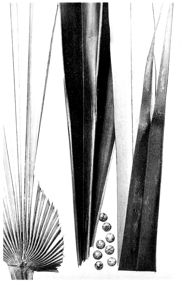 Although forming no conspicuous part of the palm vegetation of the island the fan-leaved species seem to be more numerous than those of any other family. It is certain also that further species remain to be discovered, since in addition to the species listed below, young inflorescences supposed to belong to a Copernicia were collected by Sintenis (no. 6512) near Utuado, and he also collected two other Thrinax-like palms of doubtful identity, one near Cabo Rojo and one at Fajardo.