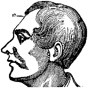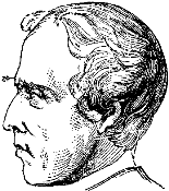 Moderate.—Rather fails in explaining, clearing up points, putting things together, drawing inferences, and even uses words incorrectly; with Individuality and Eventuality moderate, shows much mental weakness; with large Causality, has good ideas, but makes wretched work in expressing them, and cannot be understood; with Mirthfulness full or[Pg 125] large, tries to make jokes, but they are always ill-timed and inappropriate: p. 244.