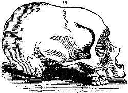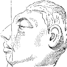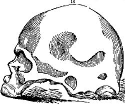 Let us take, then, for our starting point, the outer angle of the eye, and draw a line to the middle of the top of the ears, and Destructiveness is exactly under this point, and it extends upward about half an inch above the top of the ears, and in proportion to its size will the head be wide between the ears. And if Secretiveness be small and Destructiveness large, there will be a horizontal ridge extending forward and backward, more or less prominent, according to the size of this organ.