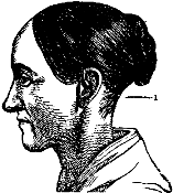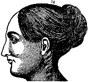 Very Large.—Possesses the communicative disposition and faculty in an extraordinary degree; with activity and intellectuality great, throws [Pg 120]an extraordinary amount of feeling and soul into every expression and action; is a natural linguist, and as fond of talking and writing as of eating; with activity great, average Causality, large Combativeness, and a nervous temperament, will be a scold: p. 226.
