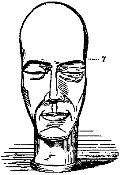 Language is located partly above and partly behind the eyes. When it is large, it pushes the eyes downward and outward, and of course shoves them forward, which gives them a full and swollen appearance, as if they were standing partly out of their sockets, and causes both the upper and under eyelids to be wide and broad. When the eyes are sunken, and their lids narrow, Language will be found small.