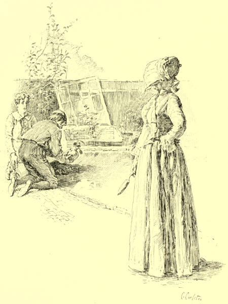 “Why, of course,” said Ruth, “he might snub us and not listen to us, but he would have to listen to his wife. She is such a pretty lady, Amos, and so kind. We had a little bit of trouble seeing her at first, because the girl (who was all dressed up, like the pictures, in a black dress and white collar and cuffs and the nicest long apron), she said that we couldn’t come in, the Governor’s wife was engaged, and they were going out of town that day. But when Elly began[246] to talk to her she sympathized at once, and she got the Governor’s wife down. Then I told her all about Sol and how good he was, and I cried and Elly cried and she cried—we all cried—and she said that I should see the Governor, and gave us tea. She was as kind as possible. And when the Governor came I told him everything about Sol—about his mother and the little boy at the mill and the dog, and how he saved the other boy, pulling out that big iron bar red-hot—”