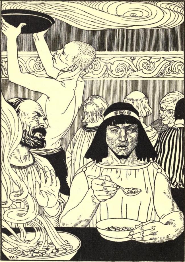 When they overcome in fight, they have a custom to make a feast with sodden beans, wherewith they banquet together for joy of their victory: only Pythagoras had no part with them, but sat aloof off, and lost his dinner because he could not away with beans.