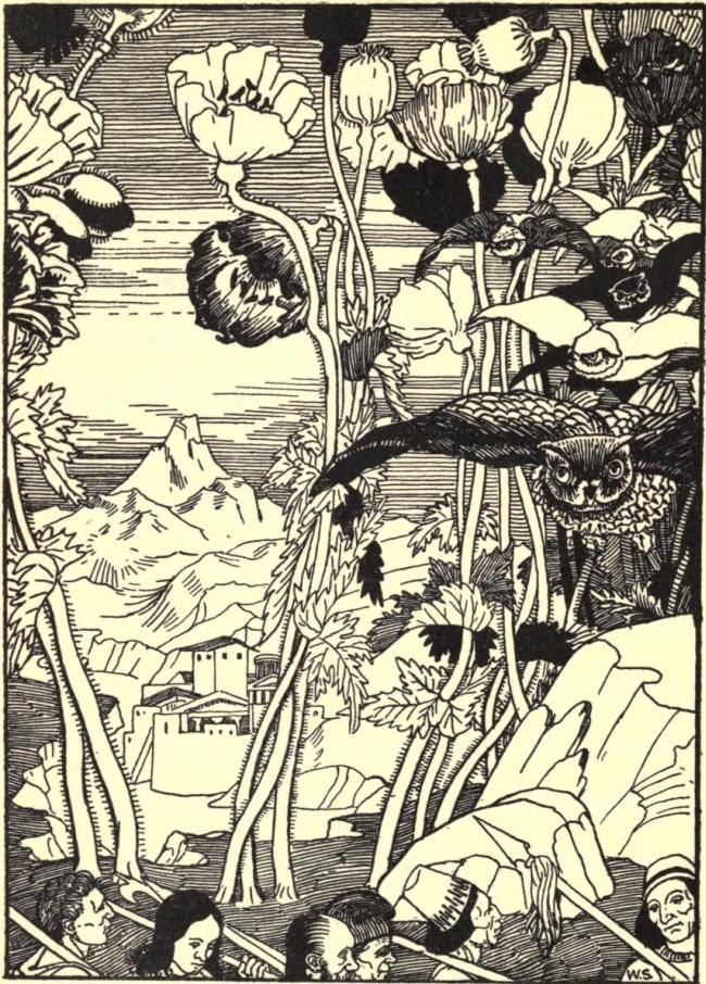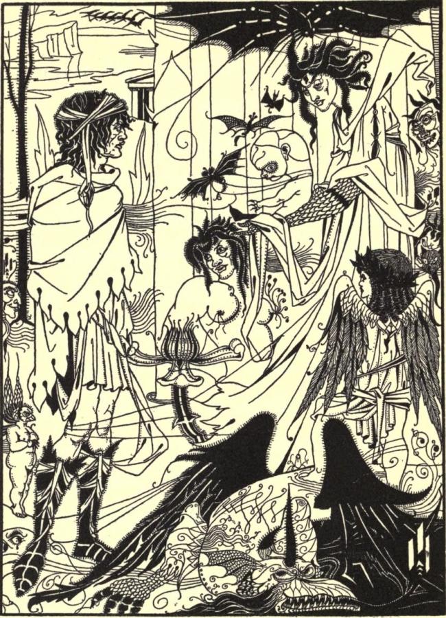 At evening we arrived upon a small island, inhabited, as it seemed, only by women, which could speak the Greek language; for they came unto us, gave us their hands, and saluted us, all attired like wantons, beautiful and young, wearing long mantles down to the foot: the island was called Cabbalusa and the city Hydramardia. So the women received us, and every one of them took aside one of us for herself, and made him her guest. But I pausing a little upon it (for my heart misgave me), looked narrowly round about, and saw the bones of many men, and the skulls lying together in a corner; yet I thought not good to make any stir, or to call my company about me, or to put on arms; but taking the mallow into my hand, made my earnest prayers thereto that I might escape out of those present perils.