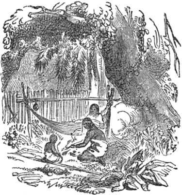 In five minutes after, the hunter was showing and explaining to his delighted young visitors the Indian curiosities which hung around the walls of his cottage, together with others which he kept with greater care. These latter were principally calumets, or peace-pipes; mocassins, or Indian shoes; war-eagle dresses, mantles, necklaces, shields, belts, pouches and war-clubs of superior workmanship. There was also an Indian cradle, and several rattles and musical instruments: these altogether afforded the young people wondrous entertainment. Austin wanted to know how the Indians used their war-clubs; Brian inquired how they smoked the peace-pipe; and little Basil was quite as anxious in his questions about a rattle, which he had taken up and was shaking to and fro. To all these inquiries the hunter gave satisfactory replies, with a promise to enter afterwards on a more full explanation.