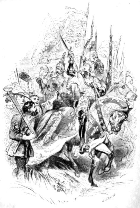 “Not satisfied, the French made a third and last attack. This was on the British right, and Wellington was obliged to form his troops into squares. The French cuirassiers were desperate, but their attacks were fruitless. All that men could do was done by them, but British hearts and British hands were too strong to be conquered. Ten thousand men on the part of Wellington, and fifteen thousand on the side of Buonaparte, lay dead upon the field. Marshal Ney led on the French bravely. Never was a braver soldier. The old French guards, the flower of the army, dashed forward, and the carnage was dreadful. The 27th British regiment had four hundred men 336mowed down in square, without their pulling a trigger. The 92nd regiment routed a French column when only two hundred strong, and the 33rd regiment was almost cut to pieces,—still they stood their ground. Wellington looked at his watch, longing for night, or the approach of the Prussians. At last came the critical moment. ‘The hour is come!’ cried Wellington, closing his telescope, and leading on the troops.”