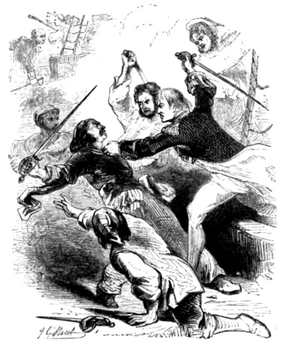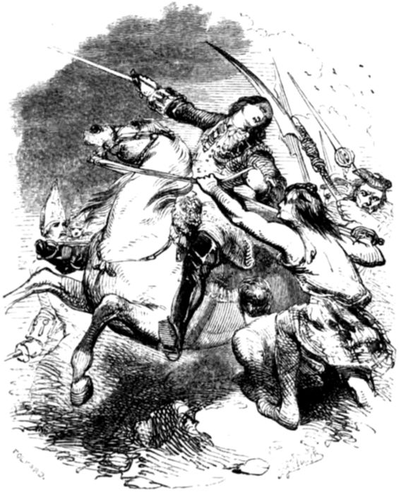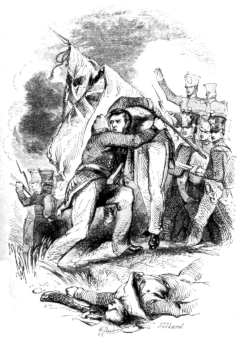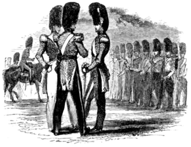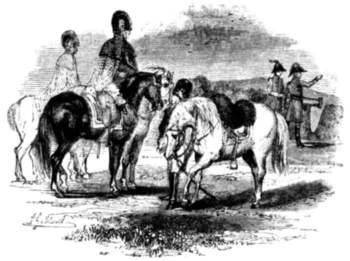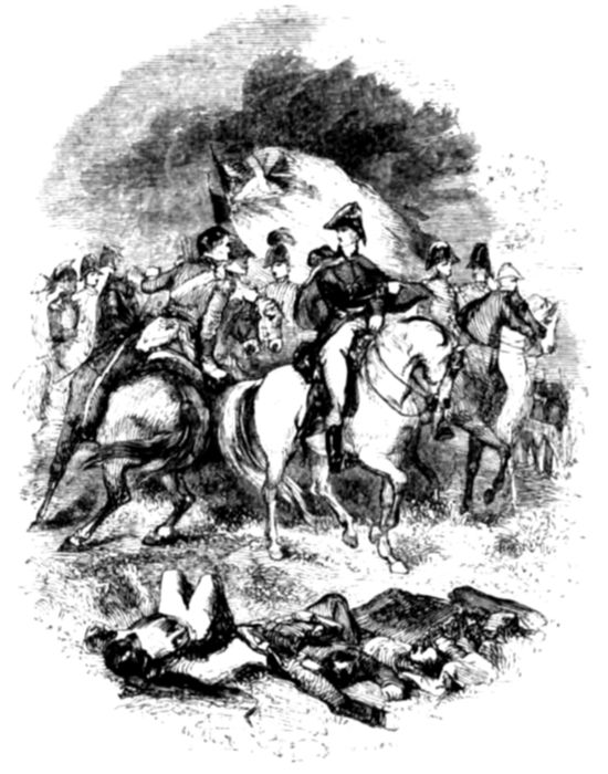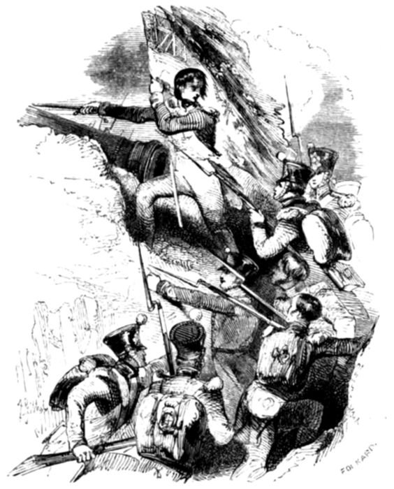 “Not exactly so. Many a brave man would in such a case have surrendered, and without dishonour too, but the colonel was too gallant an officer to think for a moment of such a course—whispering to his brigade-major to get as many men together as he could directly, he boldly rode up to the French commander and demanded his sword. The commander, not doubting but he was outnumbered, surrendered; and thus some half-dozen gallant Englishmen captured three hundred Frenchmen!”