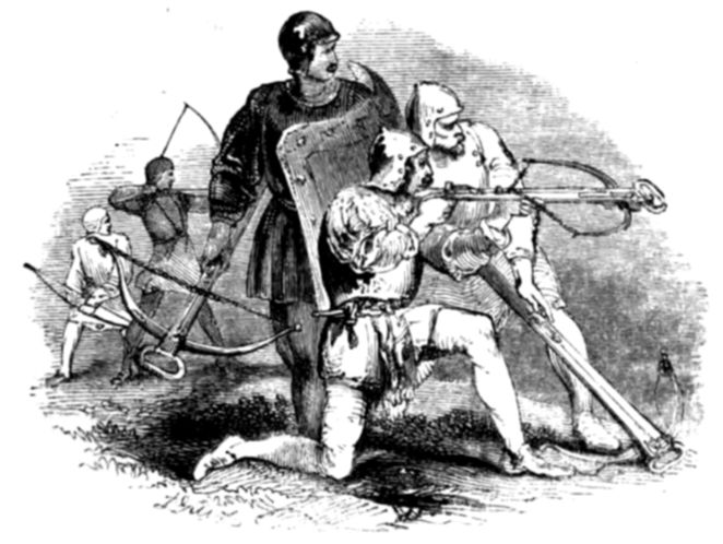 “A thoughtless prank, my lads. In my youthful days I was fond of reading of knights armed cap-à-piè, mounted on fiery steeds,—lance in the rest, helmet on the head, vambrace on the arm, cuirass on the breast, cuisses on the thighs, greaves on the legs, and sabatynes on the feet. I loved to read, too, of ancient arms, clubs and slings, bows and arrows, swords, falchions, javelins, maces, battle-axes and battering-rams; and the portable arms when gunpowder came into use,—hand-gun, arquebus, haquebut, wheel-lock, caliver, petronel, dag, dragon and hand-mortar;—and these things led me on to a soldier’s life.”