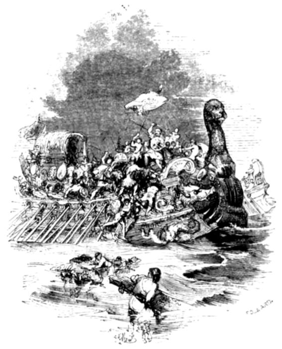 “He was, indeed, wondrously interesting, and we talked together by the hour of Soldiers and Sailors. ‘Forward,’ and ‘Off she goes,’ were our mottoes. We advanced in double quick time with the red-coats, and only halted in a case of necessity. We shared the birth of honest Jack when buffeted on the billows, nor left him till he put into harbour, mingled his prize-money with his pig-tail tobacco, and sang ‘Britannia rules the waves.’”