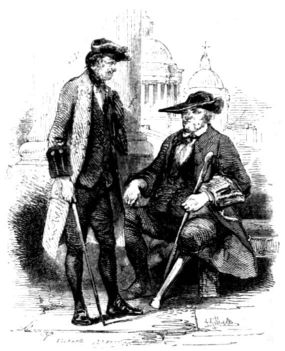 “I might tell you a great deal more, boys, for an old soldier is not soon tired in talking of his native land, or of the bold hearts that have bled in her service. The battle of Trafalgar, where Nelson fell, is the most important sea-fight, and the battle of Waterloo, which I have just described, is the most famous engagement by land, in English history. Many a disabled seaman from the one, 338has found an asylum in Greenwich Hospital, and many a wounded soldier from the other has shouldered his crutch in Chelsea College. These two places of retreat for disabled soldiers and sailors have been long held in high estimation. At Chelsea, you may see the grey-headed veterans, sitting in the sun, and at Greenwich, the weather-beaten old tars, seated under the trees in the park, talking 339over their adventures, and fighting their battles over again. I can fancy that I now see them grouped together, with a flag flying over their heads, bearing underneath the crown of Victoria the motto, ‘Old England for ever! Soldiers and Sailors! Wellington and Nelson! Waterloo and Trafalgar!’