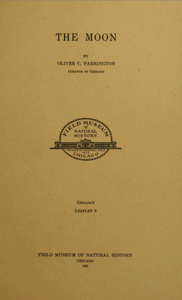 Shaler, Nathaniel S.—A Comparison of the Features of the Earth and the Moon. Smithsonian Contributions to Knowledge. 1907. Vol. 34, pp. 1-79. 25 plates.