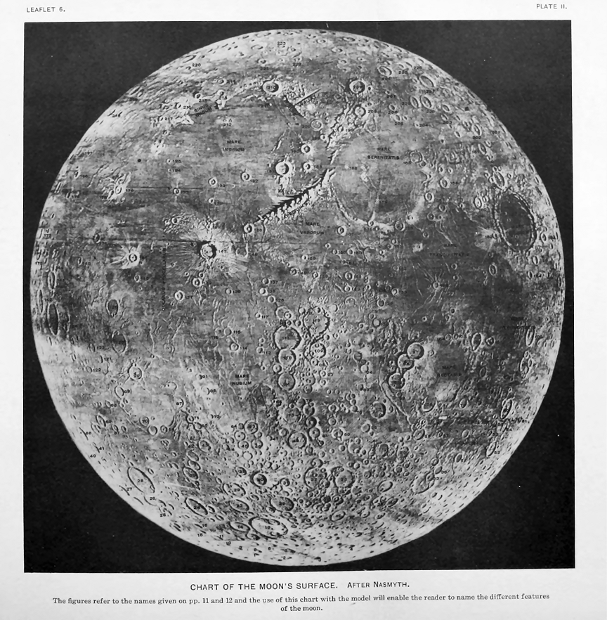 Nasmyth, James and Carpenter, James—The Moon. John Murray, London. 1885. 213 pp. 25 "Woodburytype" plates and several text figures.