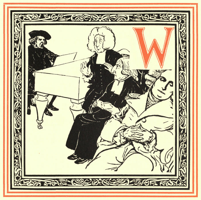 Wagner, who sang and played lots for Washington, Wesley, and good Doctor Watts. His prurient plots pained Wesley and Watts,