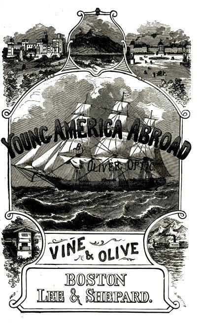 Vine and Olive, the fifth volume of the second series of “Young America Abroad,” contains the history of the Academy Squadron during the cruise along the shores of Spain and Portugal, and the travels of the students in the peninsula. As in the preceding volumes, the professor of geography and history discourses on these subjects to the pupils, conveying to them a great deal of useful information concerning the countries they visit. The surgeon of the ship is a sort of encyclopædia of travel; and, while he is on shore with a couple of the juvenile officers, he enlightens them by his talk on a great variety of topics; and the description of “sights” is given in these conversations, or in the “waits” between the speeches. In addition to the cities of the peninsula on the Atlantic and the Mediterranean, the young travellers cross the country from Barcelona to Lisbon, visiting on the way Saragossa, Burgos, the Escurial, Madrid, Toledo, Aranjuez, Badajos, and Elvas. In another excursion by land, they start from Malaga, and take in Granada and the Alhambra, Cordova, Seville, and Cadiz. Besides the ports mentioned, the party vessels visit Valencia, Alicante,—from which they make an excursion to Elche to see its palms—Carthagena, and Gibraltar.
