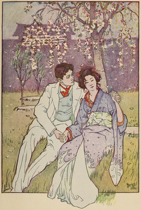 Jack Bigelow was beset by the nakodas (professional match-makers). He was known to be one of the richest foreigners in the city, and the nakodas gave him no rest. Though he found them interesting, with the little comedies and tragedies to relate of the matches they had made and unmade, he had remained impregnable to their arts. He naturally shrank from such a union, and in this position he was strengthened by a promise he had made before leaving America to a college chum, his most intimate friend, a young English-Japanese student, named Taro Burton, that during his [pg 17] stay in Japan he would not append his name to the long list of foreigners who for a short, happy, and convenient season cheerfully take unto themselves Japanese wives, and with the same cheerfulness desert them.