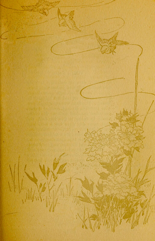In summer the fields of Japan are alive with color—burning flat lowlands shimmering with the dazzling gleam of the natane and azalea blossoms. In autumn the leaves, as well as the blossoms, have caught all the tints of heaven and earth, and in winter the gods are said to be resting after their riotous ramblings during the warm months. But in the spring-time they awake, and in their lavish renewed youth bless hill and dale and meadow and forest with an abandon unlike any other time of year. It is the season of the cherry blossom, of the mating of the birds, the babbling [pg 216] of the brooks, and the chattering and unfolding anew of all the beauties of nature.