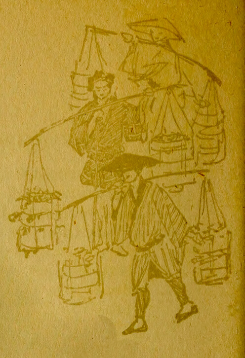 As in a dream the interminable stretch of rice-fields, blue mountains, and valleys and hamlets, stretching away into misty outlines, flashed by him, and he noted only half absently how the heels of his runner were all worn hard just as if they had dried in the sun. Yuki once had called his attention to this.