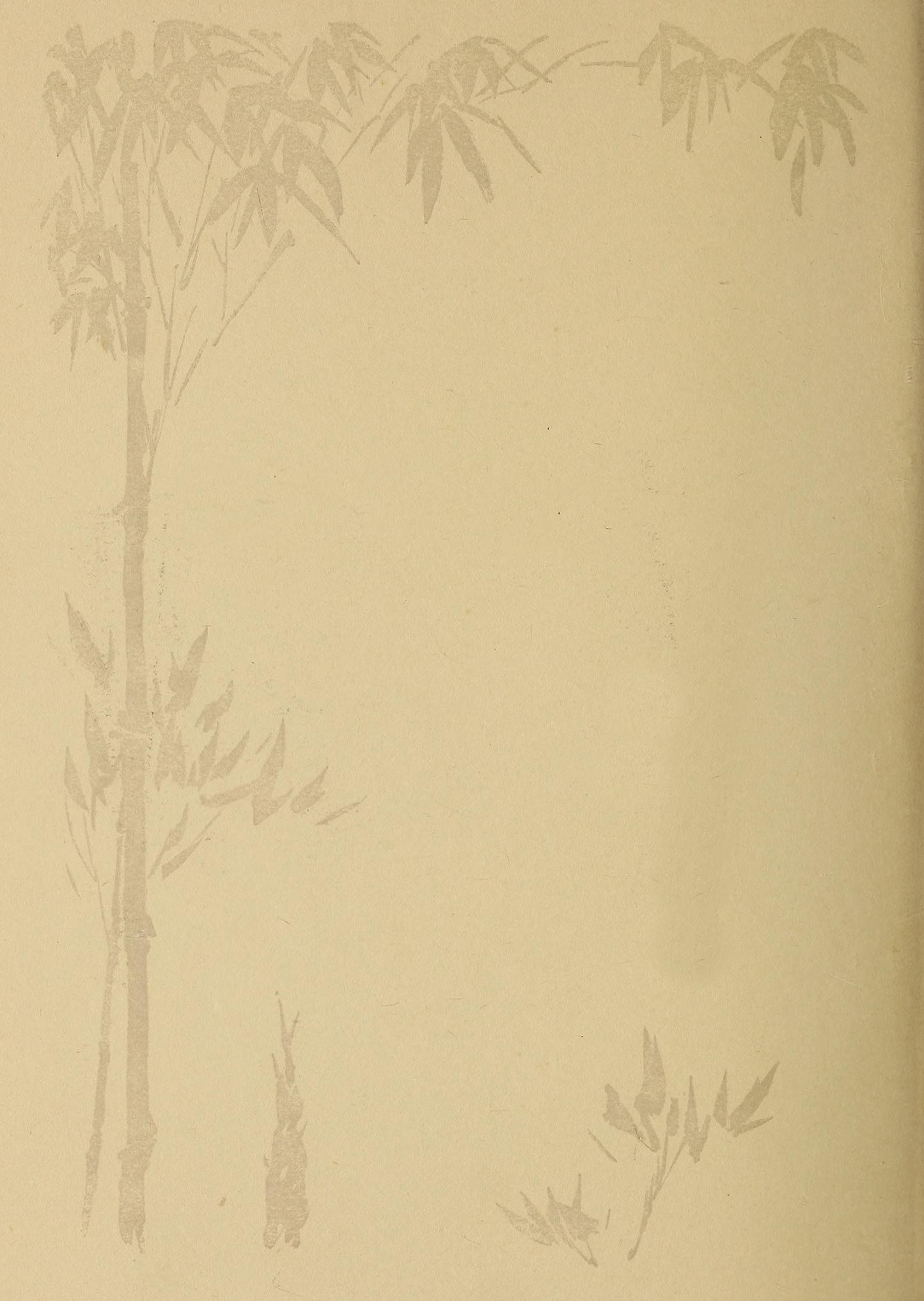 Besides the Be-koku-jin and the maid Obun there were three students, proudly acting as body-guard. Several dozen bearers and servants also accompanied the party. No halt was made until the last rays of the setting sun had disappeared entirely from the sky. Then the runners rested, and the Be-koku-jin alighting walked with his head bent, his hands behind him, as if plunged in some troubled thought. The students drew together in a whispering group and watched the famous surgeon, or threw furtive glances in the direction of the fox-woman, whom none of them, as yet, had found the courage to look upon unmoved.