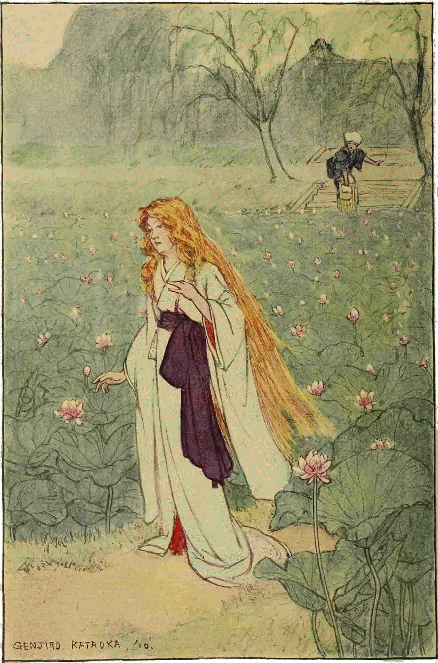 At her feet, with her fascinated, infatuated eyes pinned upon her face, crouched the maid Obun, who was pledged to her service by the Tojin-san.