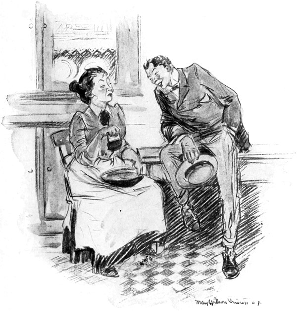 “Now Claire darlint” ses he, and he looks at her wid shining eyes, hers smiling back at him, “Will you go wid me—to-nite?”