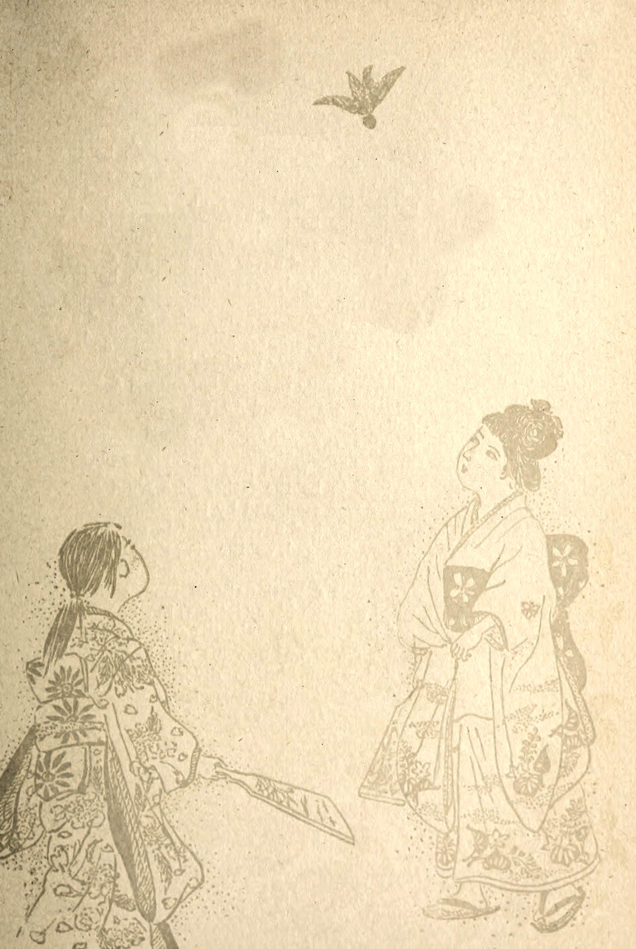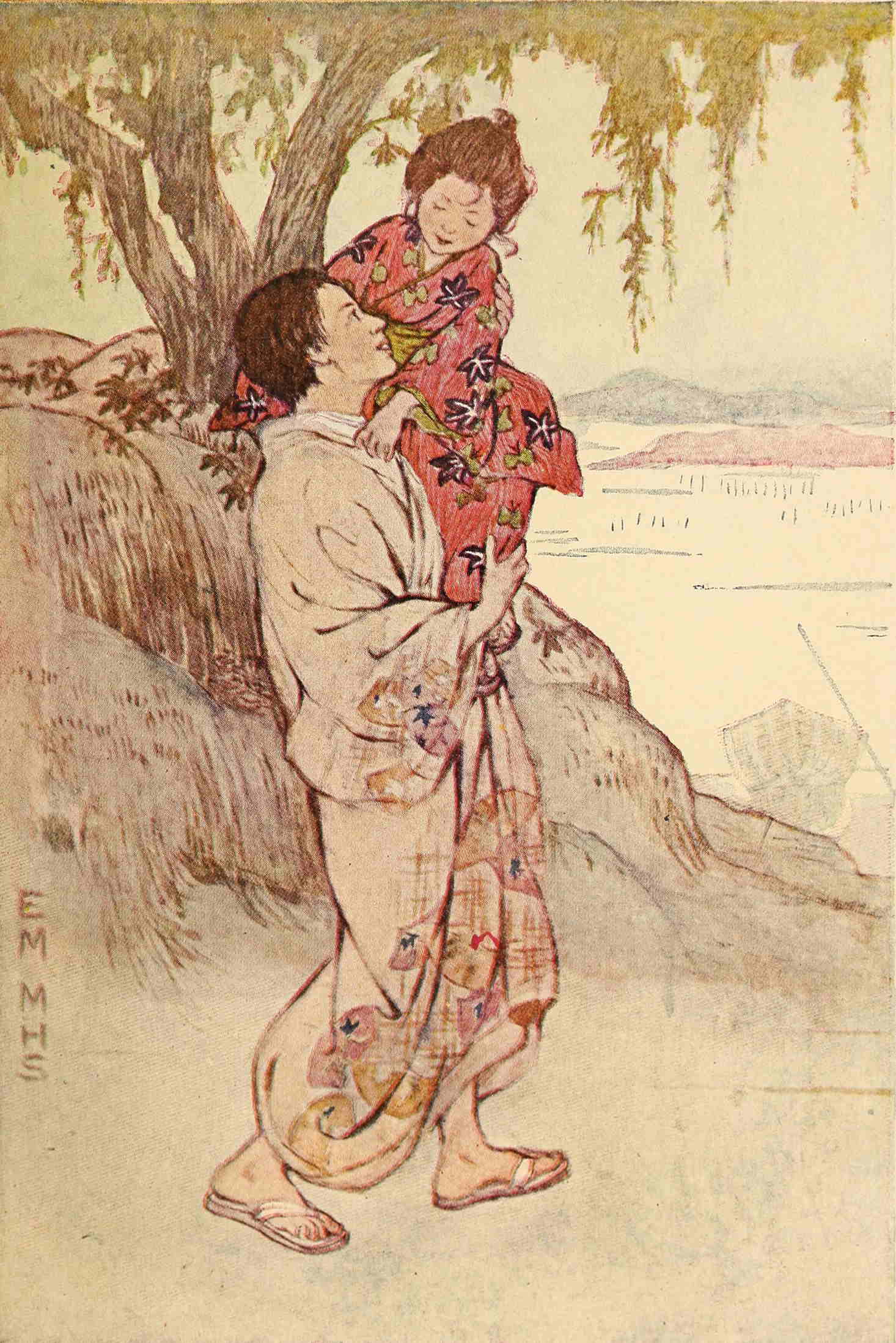“Do not so,” entreated the gentle Aoi. “See how the tree bends. Take care lest it become angry with us and vent its vengeance upon my son. But, pray you, good Mumè, return to the home and give food and succor to our honorable guest.”