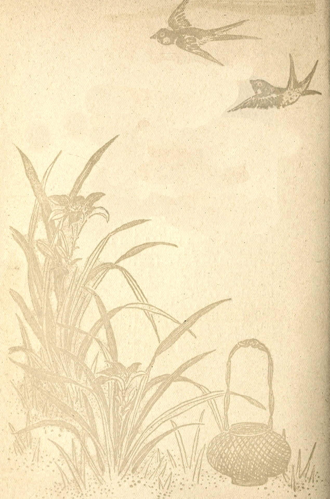 A few days later. It is early evening and the crickets are making a great bustle in the grasses, while a small, gray ape, swinging in a bamboo, is mingling its chattering with the cawing of the crows in the camphor-trees.