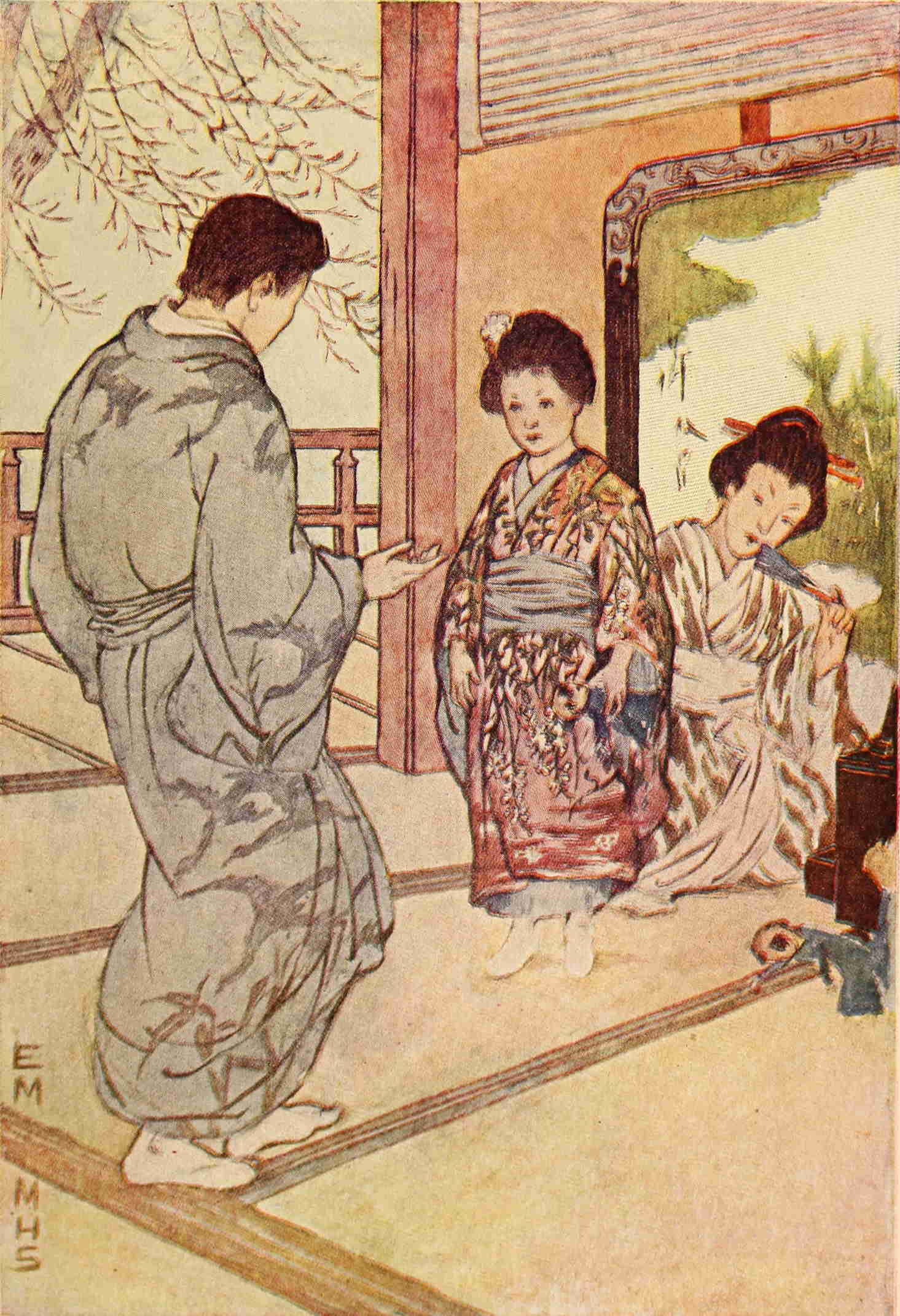 “Oh, Mumè, you are so slow the evil one will catch you. Just see, the milk boils over. Still you do not hasten. Yet the illustrious ones are ill, very ill.”