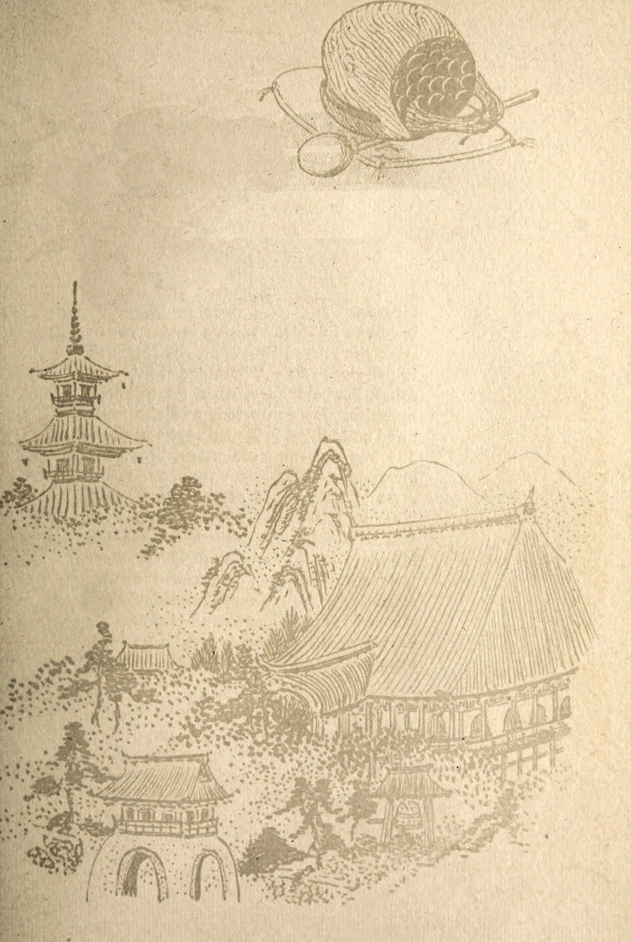 The historic temple Zuiganjii is situated at the base of a hill a few cho from the beach. About the temple are the tombs and sepulchres of the great Date family, once the feudal lords of Sendai. There is a huge image of Date Masamune, whose far-seeing mind sent an envoy to Rome early in the seventeenth century. The sepulchres are, for the most part, in the hollowed caves of the range of rocky hills behind the temples. Nameless flowers, large and brilliant in color, bloom about the tombs of these proud, slumbering lords. Mount Tomi bends its noble head in homage towards the glories of a past generation. The air is very still and cool. Silence enshrines and deifies all.