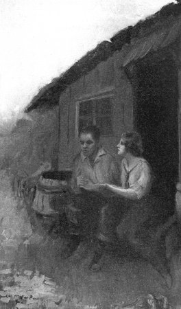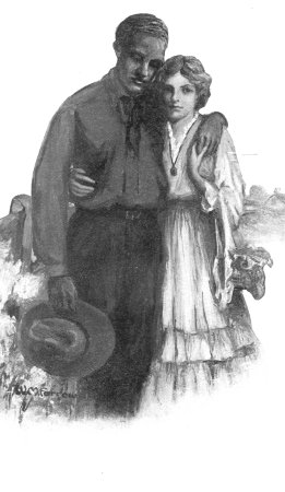 "Jean," she cried, and came close to him. She looked up into his eyes and saw what was troubling him. She got beside him closely then. She placed an arm around him, and with her free hand she lifted his left hand over her shoulder and held his fingers as she looked away across the harvest fields, and sighed lightly as she said: