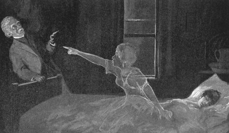 | He tried to throw off the uncanny feeling, but it seemed to hang on like grim death. And as he stood enmeshed in its sinister thraldom, he thought he saw her rise and point an accusing finger at him | 518 |
