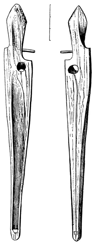 Fig. 10. Norton Sound type, single-pegged variety. Except in the better finish, this type resembles the one last described. Collected by L.M. Turner, at Saint Michael's Island, in 1876. Museum number, 24338.