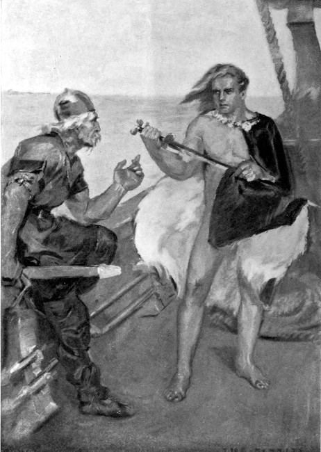 "I will not fight you, but you may have your way about fencing," the young Viking consented, rising leisurely and laying aside his cloak of soldier scarlet. Emerging from its folds, it could be seen that besides his brownness he was distinguished among his companions for the soldierly erectness with which he bore his broad-shouldered thin-flanked young body, and the compactness of the muscles that played under his burnished skin with the strong grace of a young tiger's.