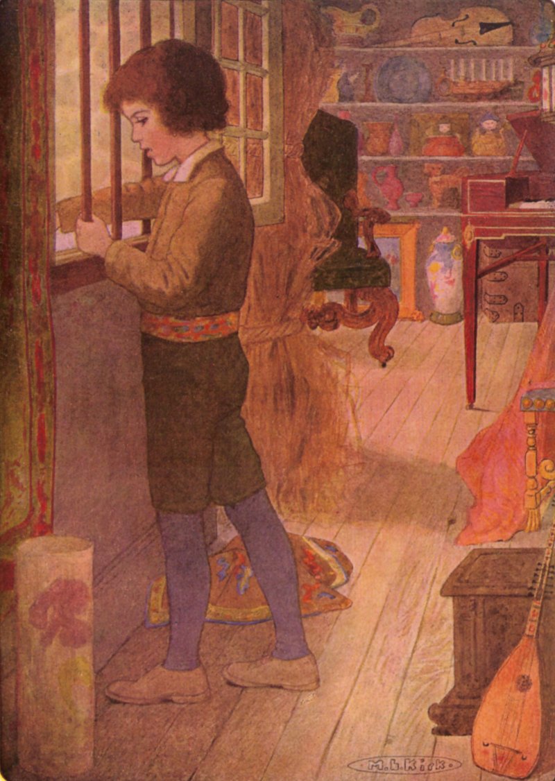 “Oh, dear king!” he said, with trembling entreaty in his faint little voice, “Hirschvogel was ours, and we have loved it all our lives; and father sold it. And when I saw that it did really go from us, then I said to myself I would go with it; and I have come all the way inside it. And last night it spoke and said beautiful things. And I do pray you to let me live with it, and I will go out every morning and cut wood for it and you, if only you will let me stay beside it. No one ever has fed it with fuel but me since I grew big enough, and it loves me;—it does indeed; it said so last night; and it said that it had been happier with us than if it were in any palace——”