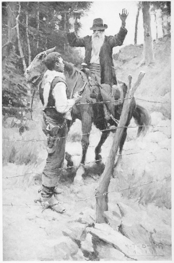 Permanent! Living men, not very old yet, have seen the Indian on the war-path, the buffalo stopping the train, the cow-boy driving his cattle, the herder watching his sheep, the government irrigation dam, and the automobile—have seen every one of these slides which progress puts for a moment into its magic-lantern and removes to replace with a new one. The final tale in this book could not possibly have happened in the day of the first tale, although scarcely twenty years separate the new, present Wyoming from that cow-boy Wyoming which then flourished so boisterously, and is now like the antelope. Steam and electricity make short work of epochs. We{10} don’t know how many centuries the Indian and the buffalo enjoyed before the trapper and pioneer arrived. These latter had fifty or sixty good years of it, pushing westward until no west was left to push to; a little beyond Ogden in 1869, the driving of that golden spike which riveted the rails between New York and San Francisco, rang out the old, rang in the new, and progress began to work its magic-lantern faster. The soldier of the frontier, the frontier post—gone; the cattle-range—gone; the sheep episode just come, yet going already, or at any rate already mixed, diluted, with the farm, the truck garden, the poultry yard, the wife, the telephone, the summer boarder, and the Victor playing the latest Broadway “records” in valleys where the august wilderness reigned silent—yesterday. The nomadic, bachelor West is over, the housed, married West is established. This rush of change, this speed we live at everywhere (only faster in some places than in others) has led some one to remark sententiously that when a Western baby is born, it immediately makes its will, while when a New York baby is born, it merely applies for a divorce.