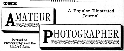 Being the ONLY JOURNAL for AMATEUR PHOTOGRAPHERS in Field, Studio, Camp; Afloat, Ashore; in Town or Country; at Home and Abroad.