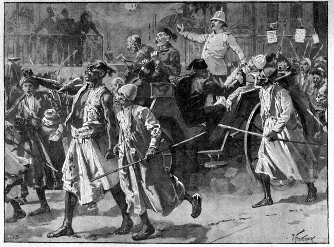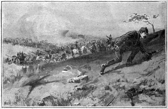 The suspense is terrible. The volleys rise and fall, the roar of the cannon swells and dies way. The minutes drag by on leaden wings. The troops in our front are not advancing, even the Artillery seems lazy this afternoon, and there, even there, where the red dust-clouds hang over a hell of slaughter, the fate of a nation is being decided. It is in vain I endeavour to imitate the imperturbability of the General, our ‘lance of iron,’ as the soldiers have learned to call him. A messenger or two rides up, and is dismissed. There is not a sign on that impassive countenance. Here is another, galloping at speed, grey with dust, and horse foaming with haste. At last! The General straightens himself up. He raises his hand to his kepi with the golden leaves, as if he were saluting a superior. Is it France or Fortune!