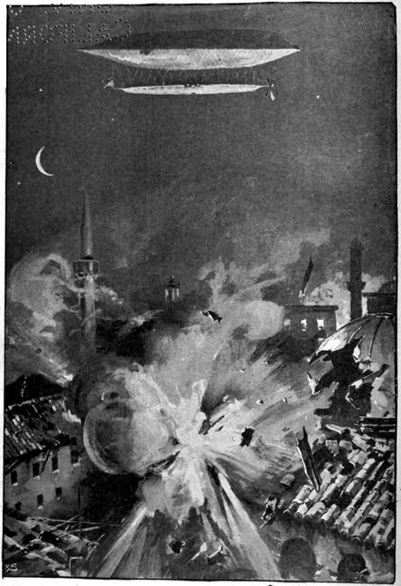 ‘A black mass of some kind was seen to drop from the Russian balloon; as it reached the level of tallest buildings it suddenly exploded, its course being marked by crashing buildings and falling ruins.’