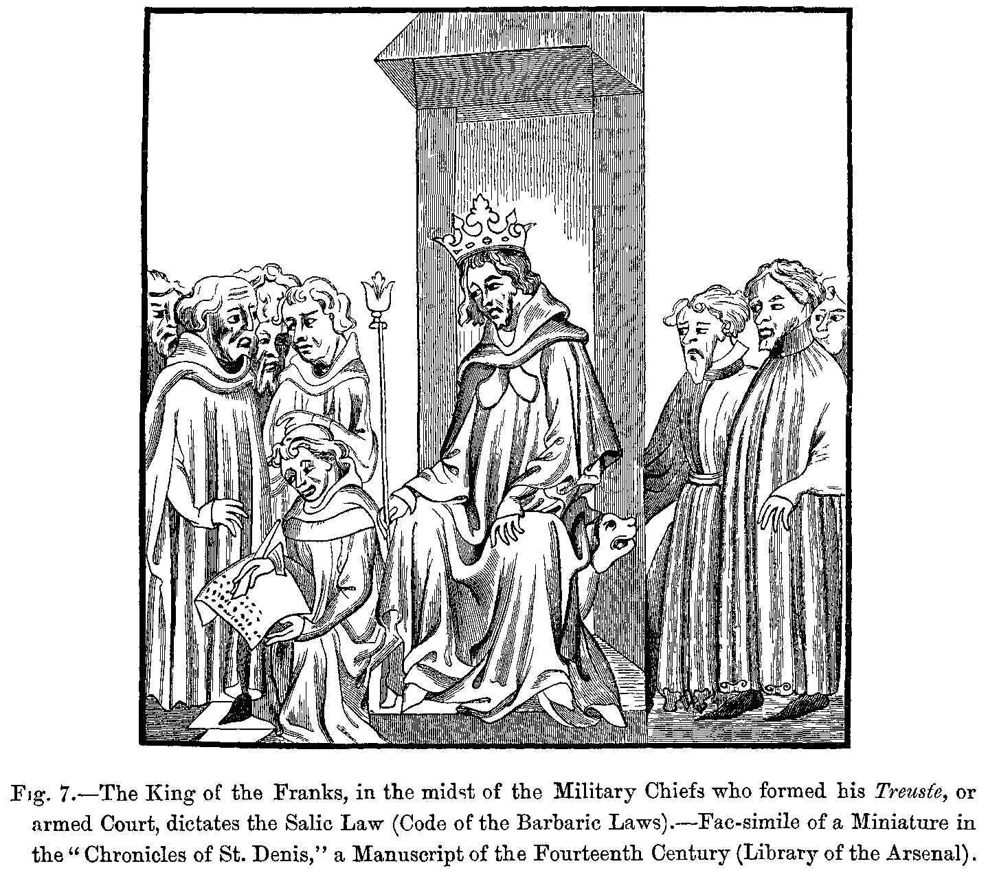 In a high order of ideas, what great facts serve as a foundation to our history and that of the modern world! We have first royalty, which, weak and debased under the Merovingians, rises and establishes itself energetically under Pépin and Charlemagne, to degenerate under Louis le Débonnaire and Charles le Chauve. After having dared a second time to found the Empire of the Caesars, it quickly sees its sovereignty replaced by feudal rights, and all its rights usurped by the nobles, and has to struggle for many centuries to recover its rights one by one.